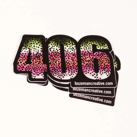 406 Montana Rainbow Trout Sticker is an original illustration by Karl Schwartz. The 3″ wide X 1.87″ tall stickers is made from thick, durable vinyl with a UV laminate that protects it from scratching, rain and sunlight.