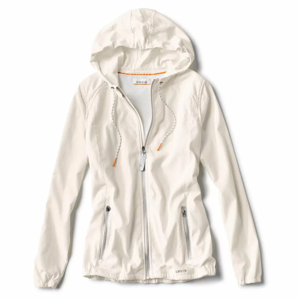 Our popular Open Air Caster Hooded Zip-Up Jacket is now softer and lighter weight with built-in stretch. Now made with our eco-friendly MarinoWul+™ performance fiber, the UPF 40+ fabric wicks away moisture to promote evaporative cooling while low-profile strategically placed mesh venting lets air circulate. OutSmart® Fresh odor control keeps you feeling confident after a day of fishing, hiking, gardening, or playing with your pup—and it cuts down on laundry. Zip pockets for stashing essentials. Sunglasses cleaner hidden in the interior keeps shades spot free. Active Fit, shaped to contour your figure without restricting.