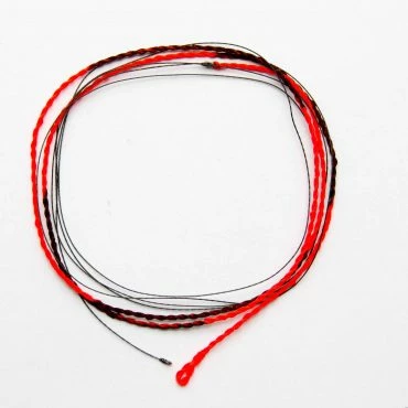Our Czech Leader consists of an 18″ Sighter that is Hi-Vis Orange with black stripes or Chartreuse with Black Stripes. The stripes on the sighter allows you to see slight movement in the sighter meaning that a fish is tugging on your fly. Then we attach 30″-36″ of 20 lb. braided line with a tippet ring. The 20 lb. braid is very thin allowing it to cut the water column (sink extremely fast) this gets your fly’s into the face of fish hanging out down deep.
