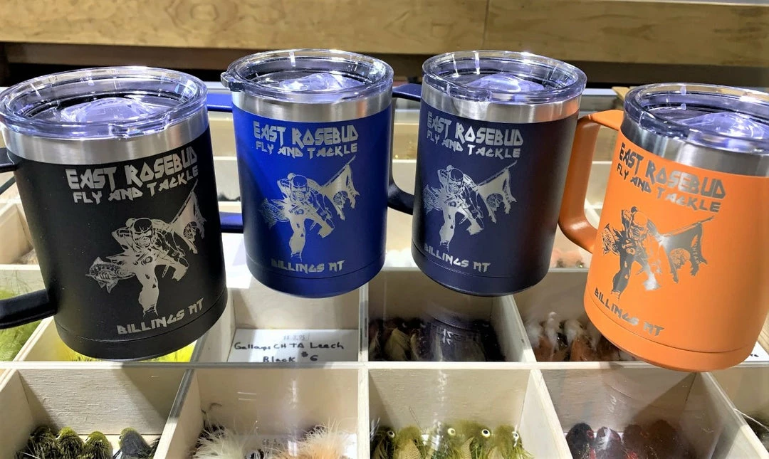 Custom East Rosebud Fly and Tackle merchandise in a variety of logos and styles. High quality ERFT drink ware that can be used anywhere, available in multiple colors.