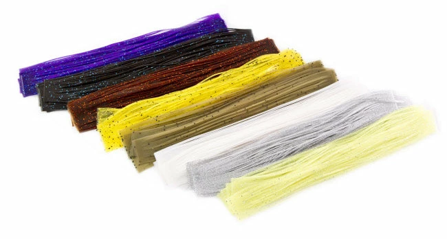 Silicone skirting legs that are used in many fly patterns for both fresh and saltwater, similar to Sili-Legs. Most styles of legs have flakes in a contrasting color embedded in the silicone, and many have 2 different colors of flakes, giving a more natural look. The silicone is translucent, and the flakes are clearly visible. The silicone color is shown in the selection chart as the 1st color, and flake colors are the 2nd. 5 skirts per package.
