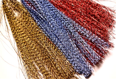 Micro Barred Voodoo Fibers: These fibers are micro barred with 400 strands of 1 /69″ wide Mylar strips, 8″ long. Perfect for predator patterns, bone fish, poppers, and nymphs. A natural to add to custom dubbing brushes. Flat film with a similar movement/action to Rhea.