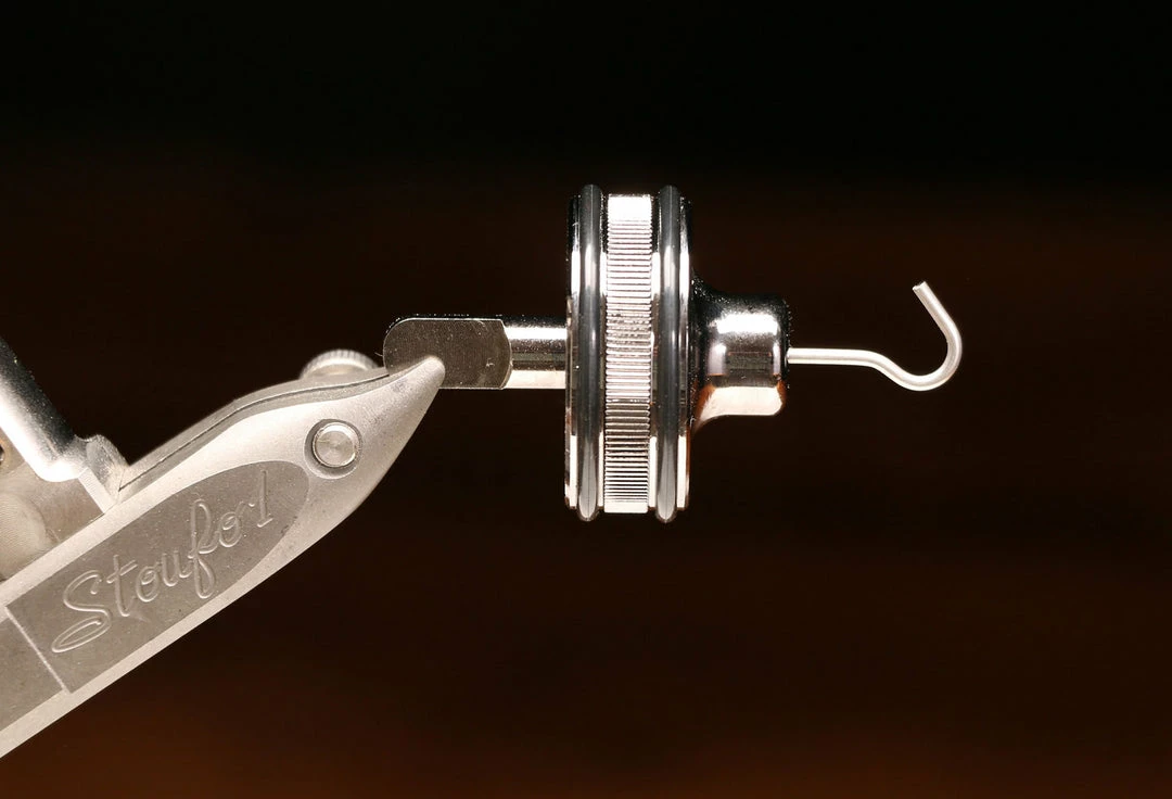 The Turbo Spin is an accessory that placed in the jaws of any type of vise allows, thanks to a precision ball bearing, an ideal rotation to create dubbing brushes.