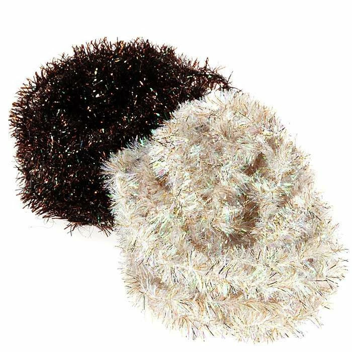 Loose weave Mylar chenille, like ice chenille, but with pearlescent fibers which make it sparkle. Lots of flash, color and action. For trout streamers, bass and pike flies. 3 yds. per pkg.