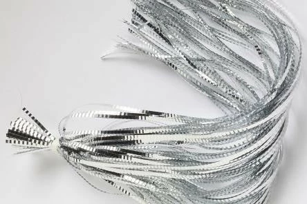 Our durable salt-water cut Flashabou crimped for a scaled look and fluttering action. Contains approximately 125 strands, 1/16″ wide by 10″ long.