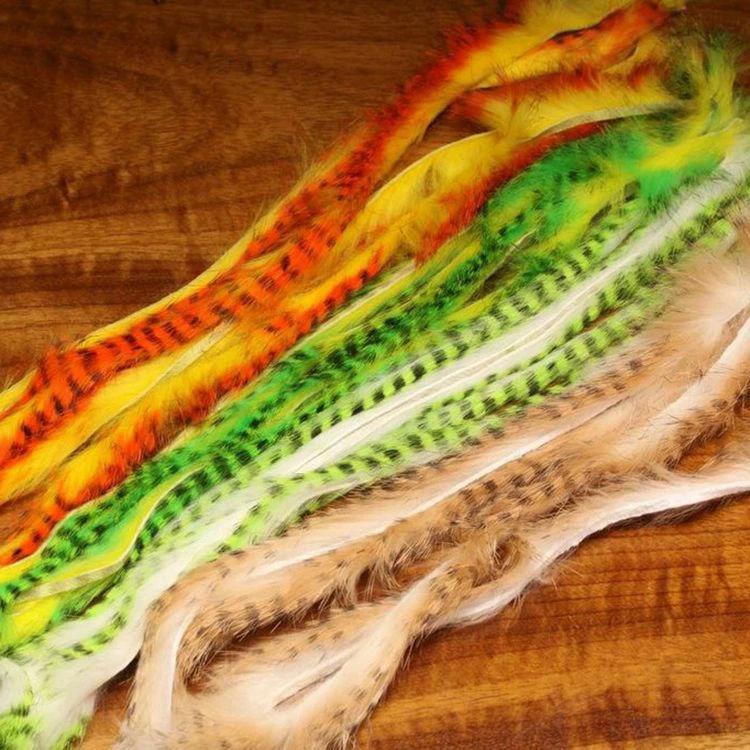 These rabbit strips are micro cut even narrower than Hareline’s standard 1/8 inch strips. They may be small, but they have a lot going on; choose your pattern of black barred or one color dyed on the ends and another on the underfur.