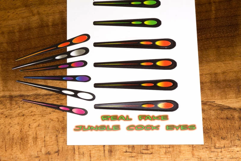 Hareline has done it again with a new product to get a fish on your fly. Historically Jungle Cock has been difficult to obtain and costly. Not anymore! Now you can add that eye/focal point on that fly in a multitude of colors. Everlast colors and just the right amount of flex make these eyes the most durable on the market. Each eye has color front and back. Two sizes, two reversible colors per pack. 32 eyes per pack.