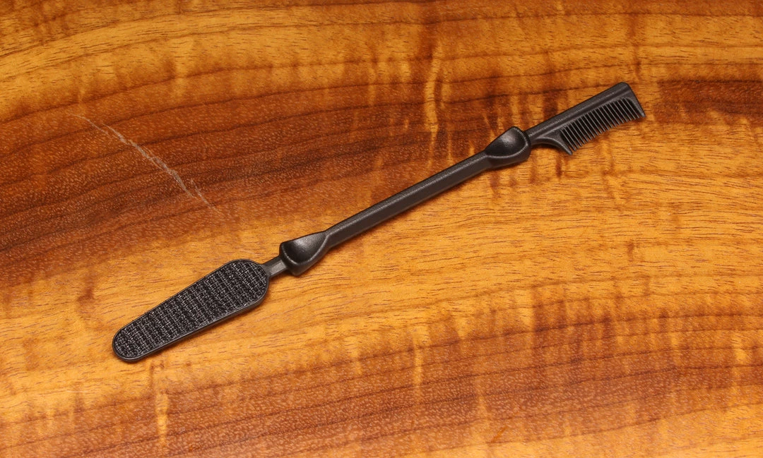 A great combination brush and comb for fly tying. Awesome for teasing out dubbing. Works very well combing and brushing out wool head flies, or dubbing headed flies.