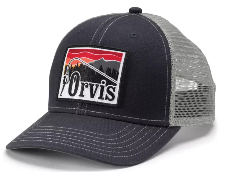 Orvis Endless Skyline shows the sunset view from their home office in Vermont and highlights this mesh-back trucker-style cap.