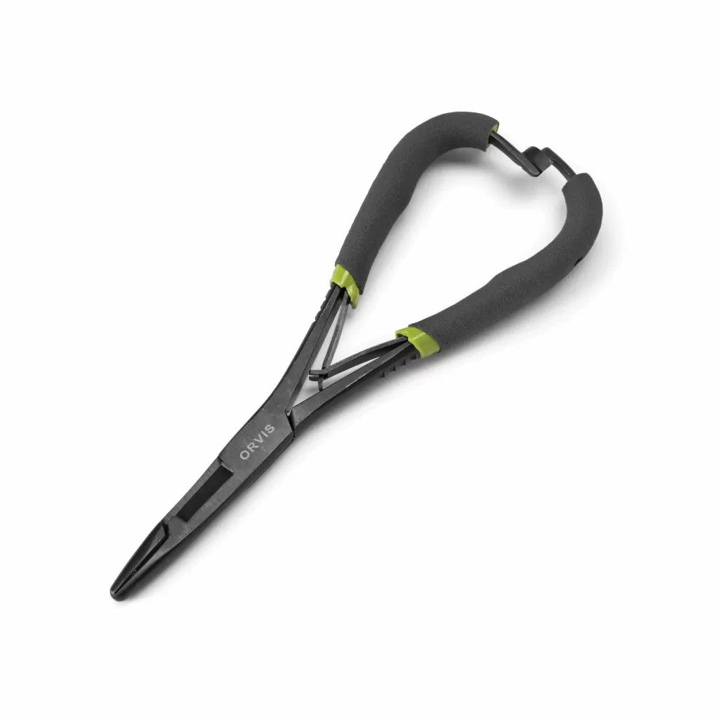 The Mitten Clamps are opened and closed with the same squeezing motion, making clipping them to a pack or vest extra convenient. Double-dipped Comfy Grip handle provides extra tackiness. Built-in scissors, eye-clearing needle, and locking handles.