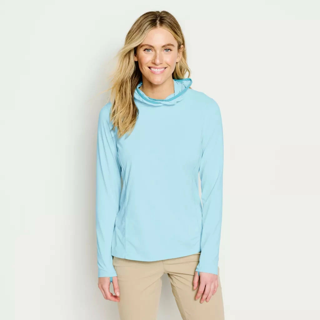 Cover up—don’t burn-up—in our ultralight and breathable UPF 50+ hoodie. Typically, the lighter the fabric the less sun protection, but not our jersey knit. New anti-NIR (near infrared radiation) yarn reflects heat to keep you cool. Plus, it dries quickly, wicks moisture, and fights odors with OutSmart® Fresh, making it perfect for fishing, workouts, or going out-and-about town for the day. Integrated thumb loops helps keep the sleeves down to create extra coverage for your hands, and stretch binding on the hood helps keep it in place on your head. And to keep you looking great in the outdoors, princess seams create a feminine silhouette.
