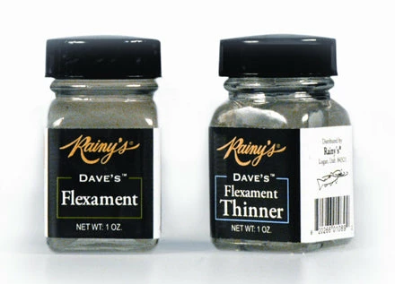 DAVE’S FLEXAMENT: The industry standard and Rainy’s exclusive. Dries evenly. Flexible. New, improved vapor-resistant cap.