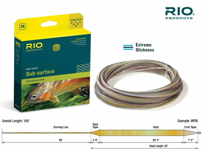 RIO’s Camolux line is an intermediate sinking line that sinks about 1.5 to 2 ips, The line is built with a unique camo coloration that is extremely effective when targeting wary fish in clear water, and is deadly efficient for fishing between 2ft and 6ft depth in lakes. Each line features a welded loop on the front end for fast rigging.