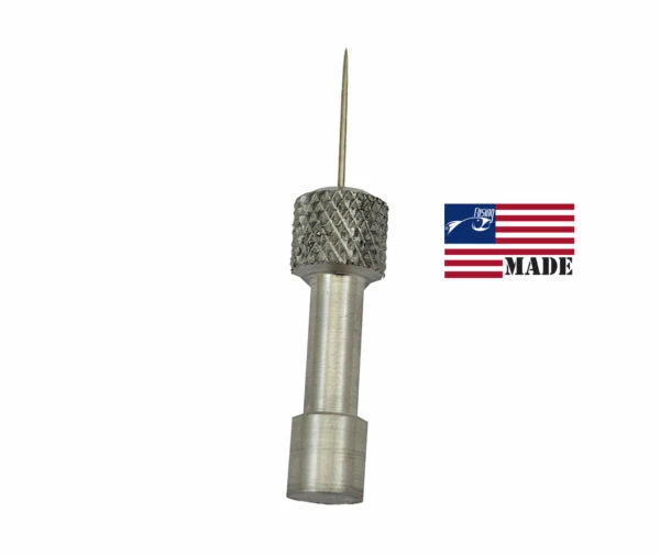 We turn aluminum rod on our lathe in house to make the handle, the strong needle is cemented into place with our secret, high tech compound and the result is a Bodkin that perform flawlessly for years.