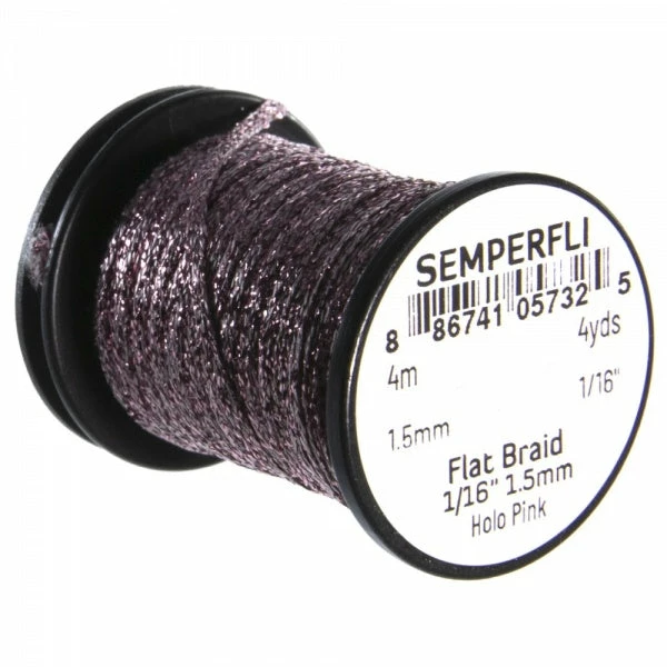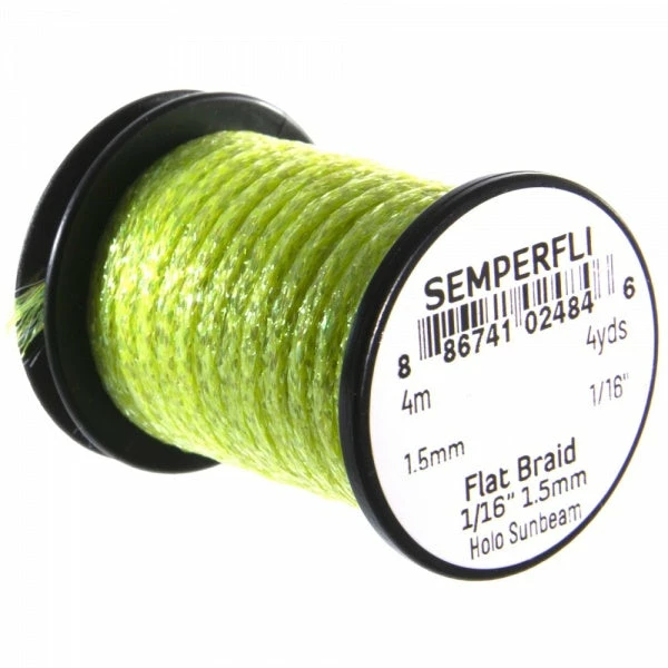 Flat Braid can be used for flies from small to large salmon, streamer and saltwater patterns. These braids are extremely strong and tie in easily. Pull tight and the strand becomes narrow and thicker, twist and it cords. With less pressure and wiggle the flat strands spread or fray for a spray of flashy or fluorescent Fibers. Fantastic on bonefish, salmon and saltwater patterns.