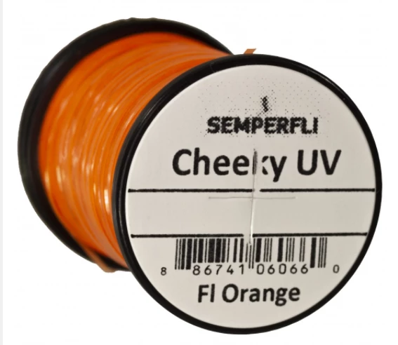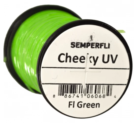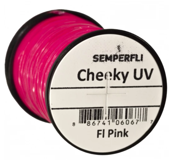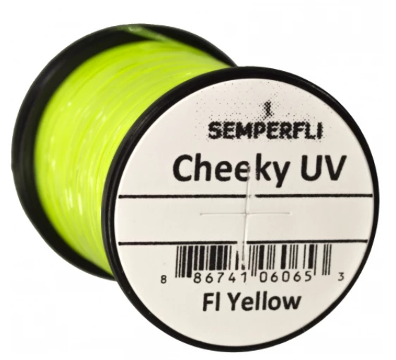 Cheeky UV is a product we were asked to design by a top competition angler who wanted holographic cheeks on a thin film for buzzers / chironomids. It is an ultra thin UV film that glows extremely vibrantly under UV torches or sunlight. Highly versatile Cheeky UV is a plastic film it can be stretched thin or used directly from the spool for lateral lines, as bodies with ribbing over, for winging and is ideal for buzzer or chironomid cheeks or as UV tail stubs.