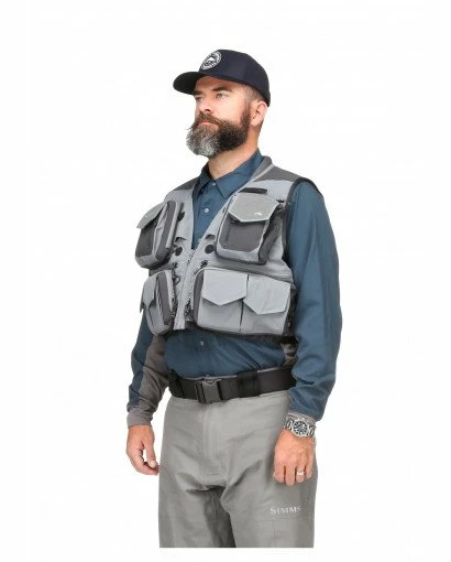 When a sudden pale morning dun hatch brings hungry fish bubbling to the surface, but you just tied on a nymph, be prepared to seize the moment and change on the go. Simms’ G3 Guide™ Vest is a multitasking companion, with 24 pockets to fit all your tackle and personal items. A ventilated, padded collar adds plush comfort to the stretchy mesh shoulders, so you’ll be comfortable on long days snapping casts across the water. This fishing vest is built with two retractors that let you clip on pliers and other tools for easy access.