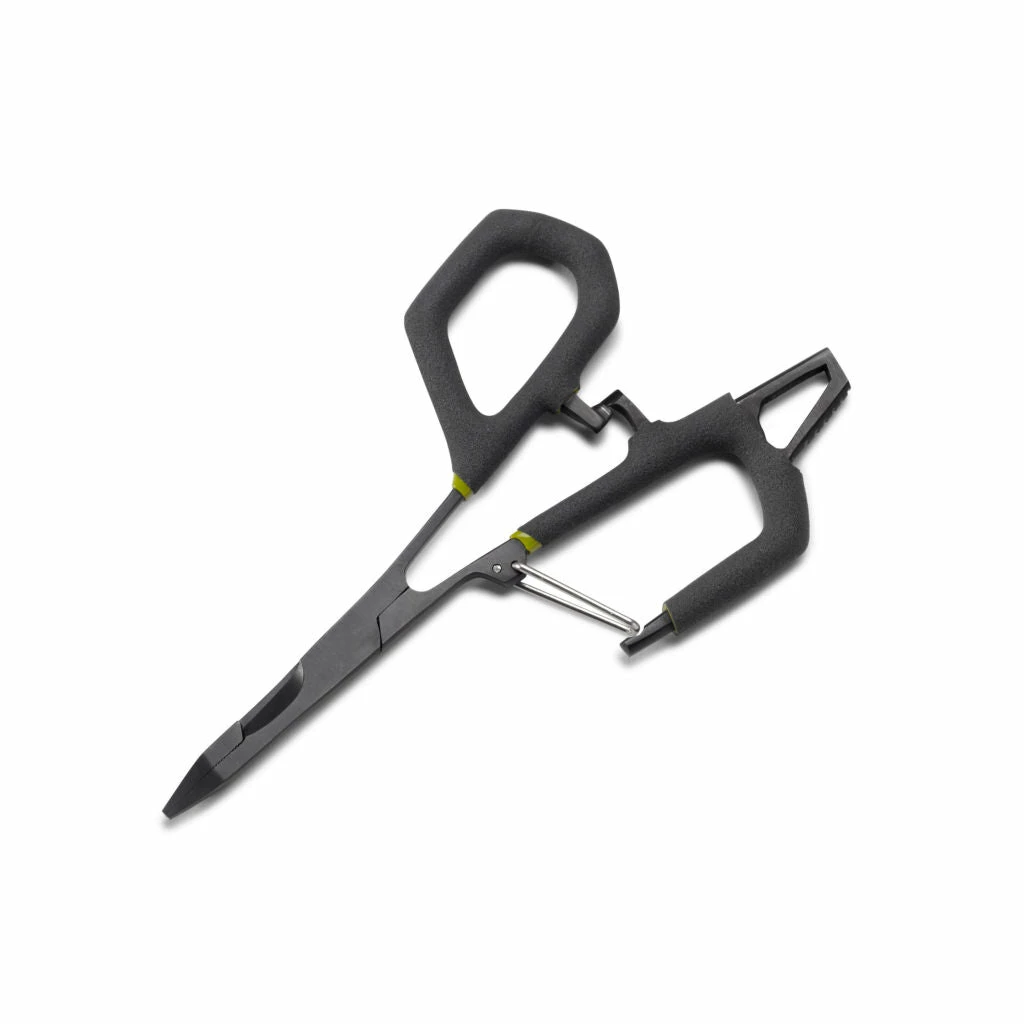 In the Orvis Flow Hemo, old-school reliability meets an innovative new design of the angler’s classic fly-fishing hemostat, a must-have tool. We started with a lever-action carabiner on the handle, which requires just a single upward or downward motion to clip/unclip from any attachment point. The finger holes came next, now double cased in a comfy, grippy coating and oversized to accommodate gloved or larger hands. The small leverage extension grip off the larger hole also offers ample finger space to really lean into the tool and makes crimping stubborn barbs much easier. Once gripped, a mitten clamp makes unlocking or locking the jaws easy—just squeeze. The business end of the jaws even features scissor blades for trimming tippet or for on-the-water fly modifications.