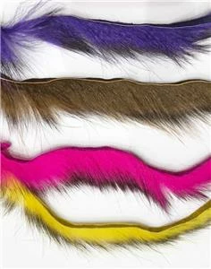 Zonkered strips of dyed possum fur. The hair is longer and stiffer than rabbit and other similar furs with a nature sheen and black tips
